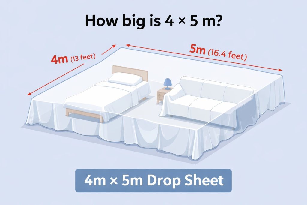 Cover an entire room with one sheet. Our 4m × 5m drop sheet for painting protects furniture, floors, and surfaces from paint, dust, and moisture — ideal for home projects and light professional use.